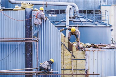 位于黃家埠鎮(zhèn)工業(yè)園區(qū)的寧波光耀熱電有限公司今年將投入1.4億元進(jìn)行高溫高壓(一爐一機(jī))改造項目。據(jù)悉,該項目完成后,在滿足熱負(fù)荷需要的情況下,預(yù)計減少20%的用煤量,極大減少煙塵、二氧化硫的排放,脫硫效率預(yù)計達(dá)到97.8%,獲得較好的環(huán)境效益。圖為2月20日,施工人員在進(jìn)行鍋爐后煙道改造施工。(楊爾攝)
