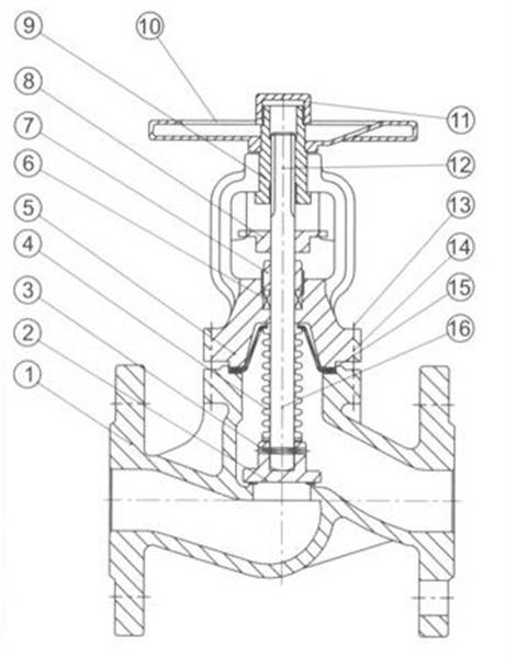 WJ41H波紋管截止閥內(nèi)部采用波紋管結(jié)構(gòu),不銹鋼的波紋管下端焊接在閥桿上,以防止工藝流體浸蝕閥桿。另一端置于閥體和閥蓋之間構(gòu)成靜密封。采用雙重的密封設(shè)計若波紋管失效閥桿填料也會避免泄漏,波紋管焊于閥桿保持穩(wěn)定的運(yùn)行性能,避免由于閥塞振動引起閥桿振動。